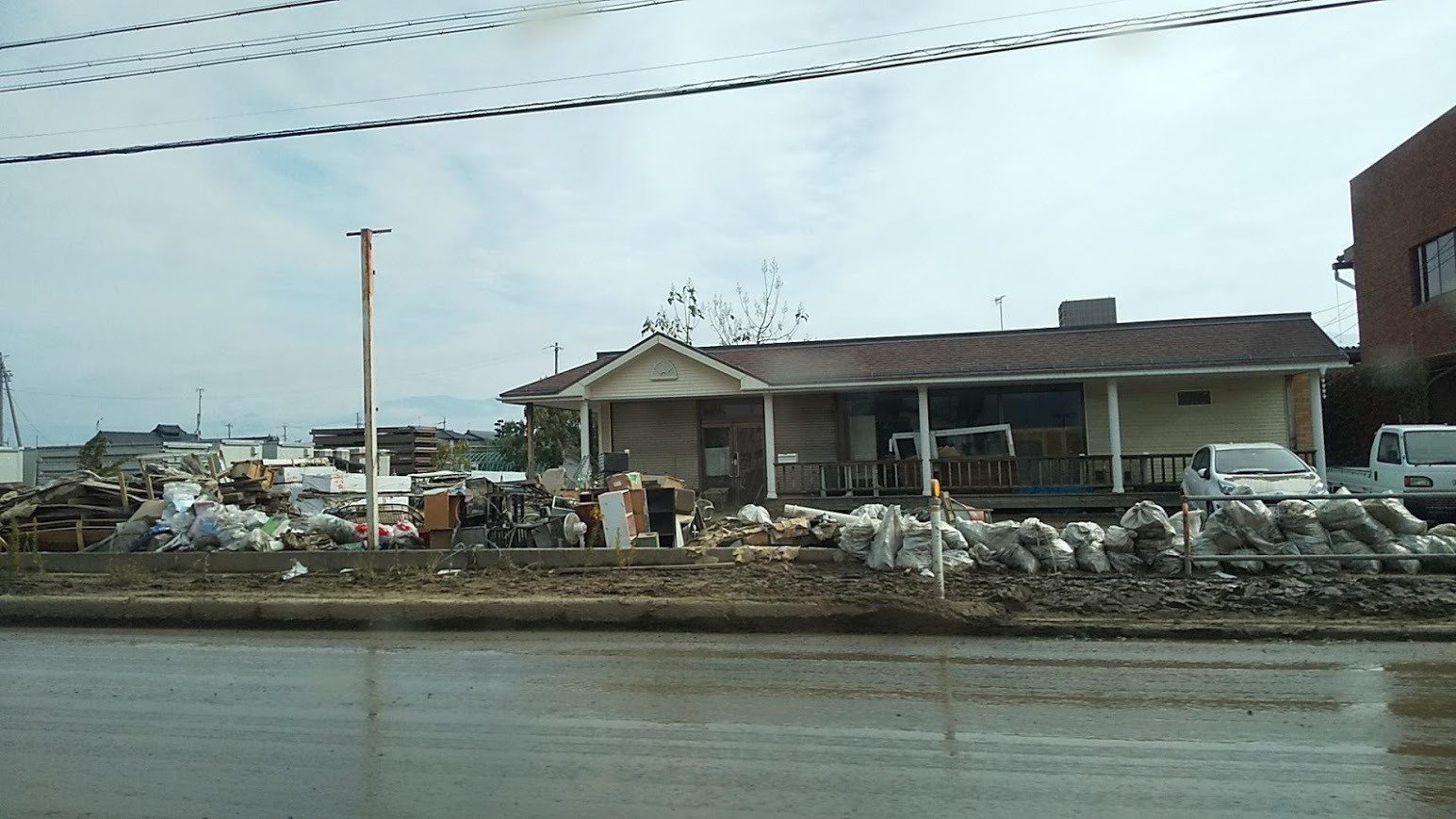 浸水被害は思っていた以上に広範囲に及んでおり、国道18号(通称:アップルライン・・・りんご畑が広がっていてこの名前がつけられています)の周辺は、距離にて約3キロ以上にわたり、家屋だけではなくお店や会社などにも甚大な浸水被害が出ていました。