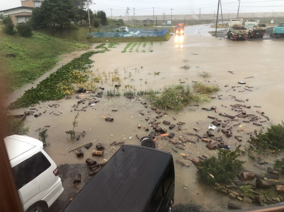 野田村の隣の久慈市も被害が大きかったとの情報がありましたが、野田村に向かう道路にも何ヵ所か土砂が流れたあとがあり、水路を樹木がふさぎ冠水したところもありました。