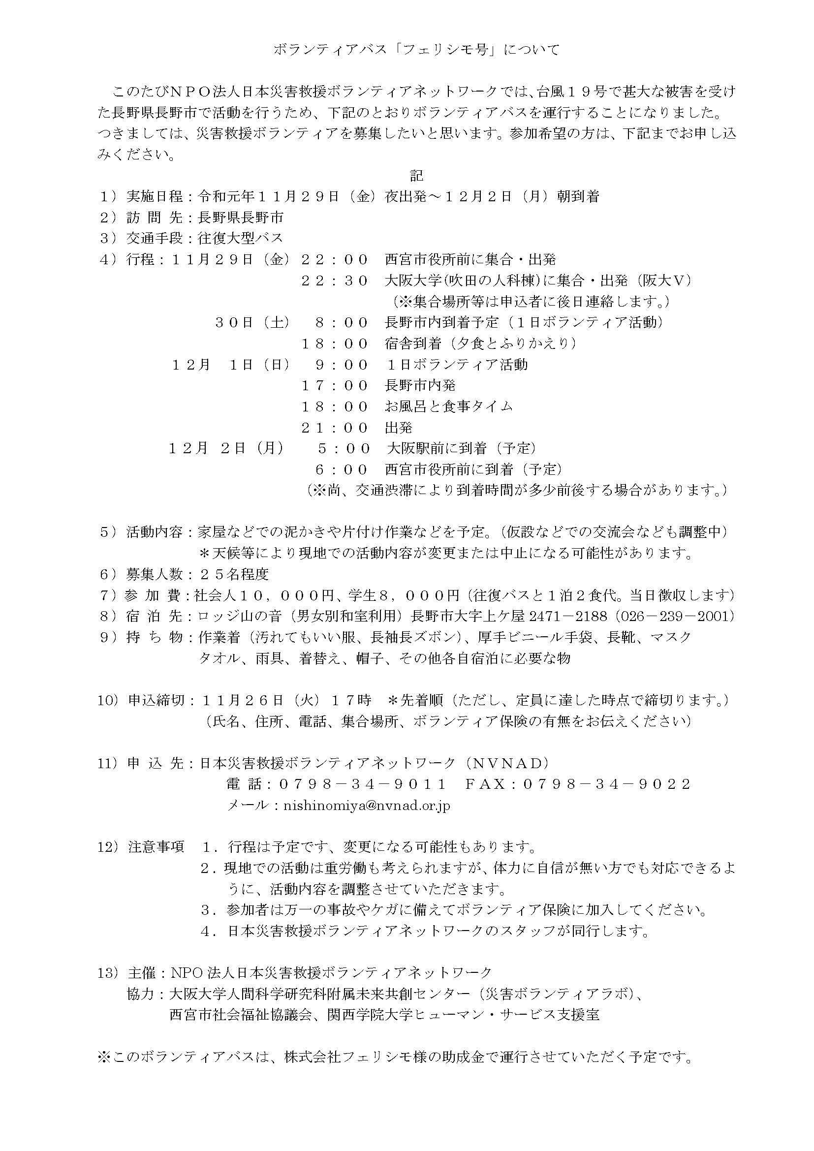 長野市支援・ボランティアバスのお知らせ