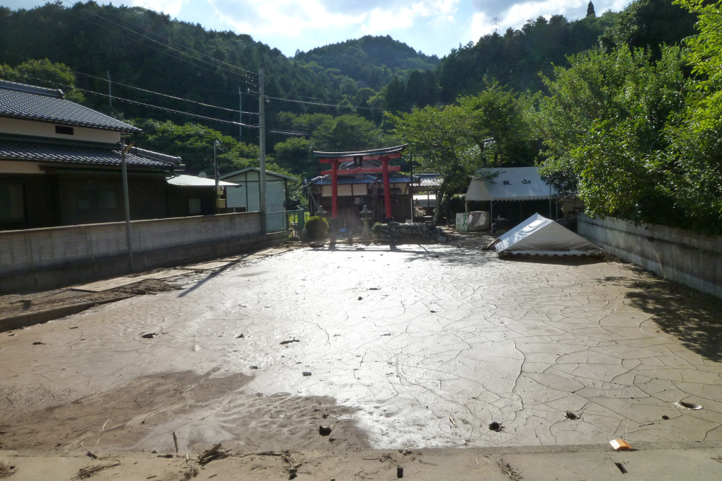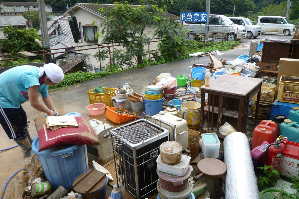 市街地から離れた炭山地区の救援に向かい、住民の方々と一緒に、土砂の撤去から家の様々な片付けまで関わった。焼き物の里。大切な陶器が壊滅的な被害を受けた水害であった。